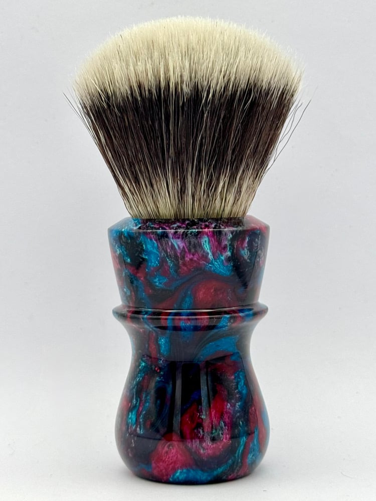 This is a hand turned and finished Resin shave brush handle. This comes with our new coin.