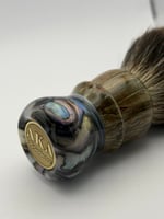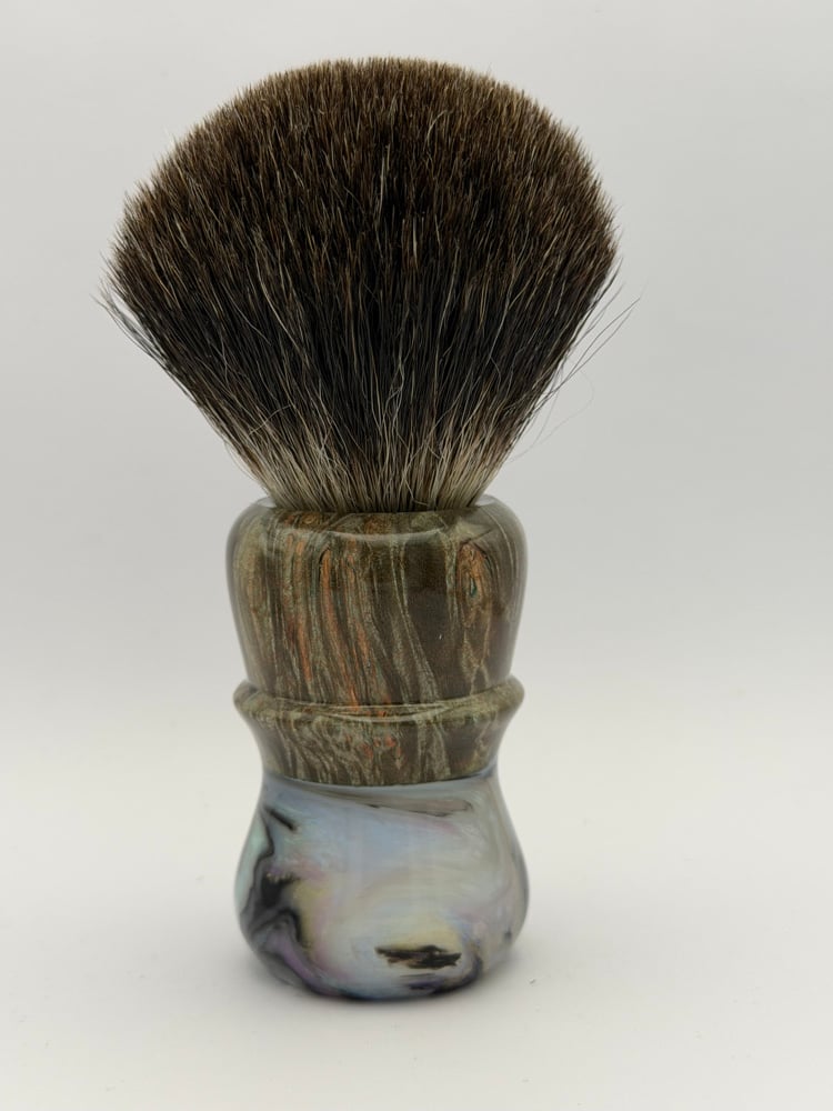 This is a hand turned and finished Resin shave brush handle. This comes with our new coin.