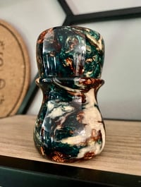 This is a hand turned and finished Resin shave brush handle. This comes with our new coin.