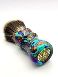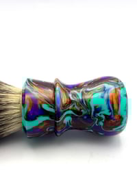 This is a hand turned and finished Resin shave brush handle. This comes with our new coin.