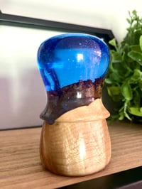 This is a hand poured, turned and finished Resin and Maple Burl Hybrid shave brush handle.