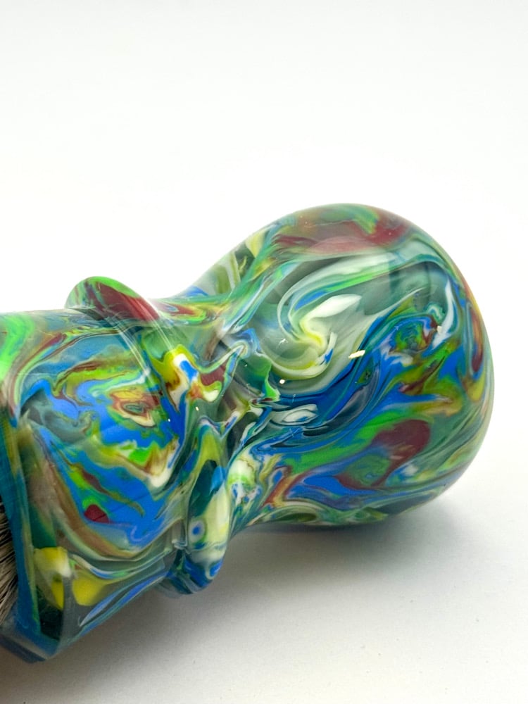 This is a hand turned and finished Resin shave brush handle. This comes with our new coin.