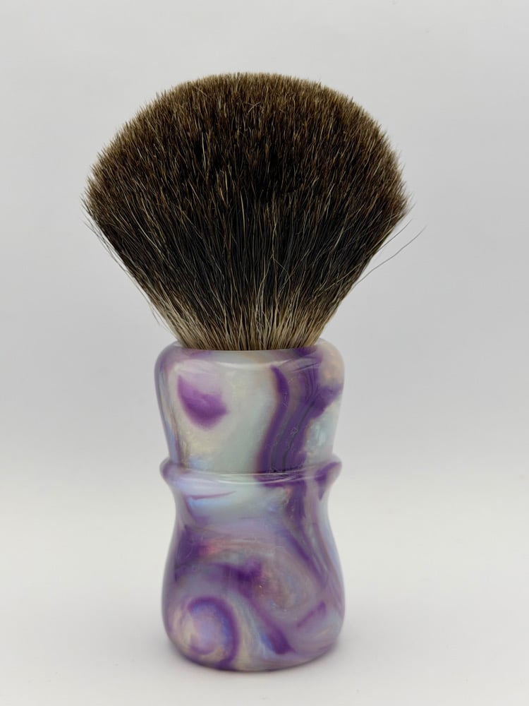 This is a hand turned and finished Resin shave brush handle. This comes with our new coin.