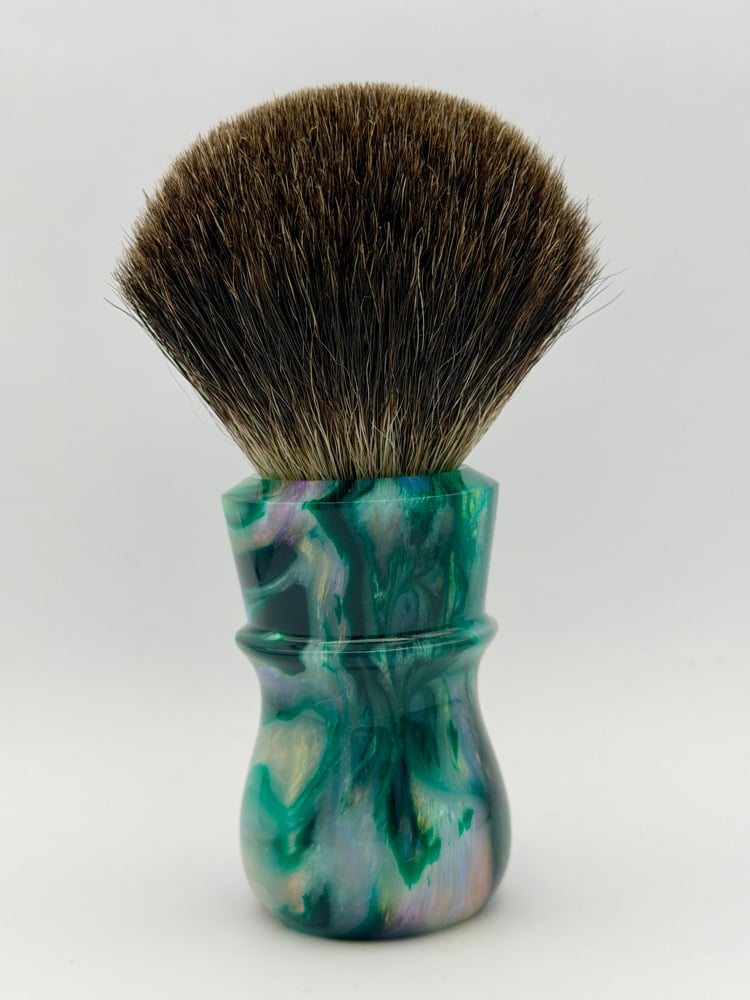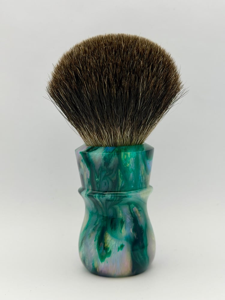 This is a hand turned and finished Resin shave brush handle. This comes with our new coin.