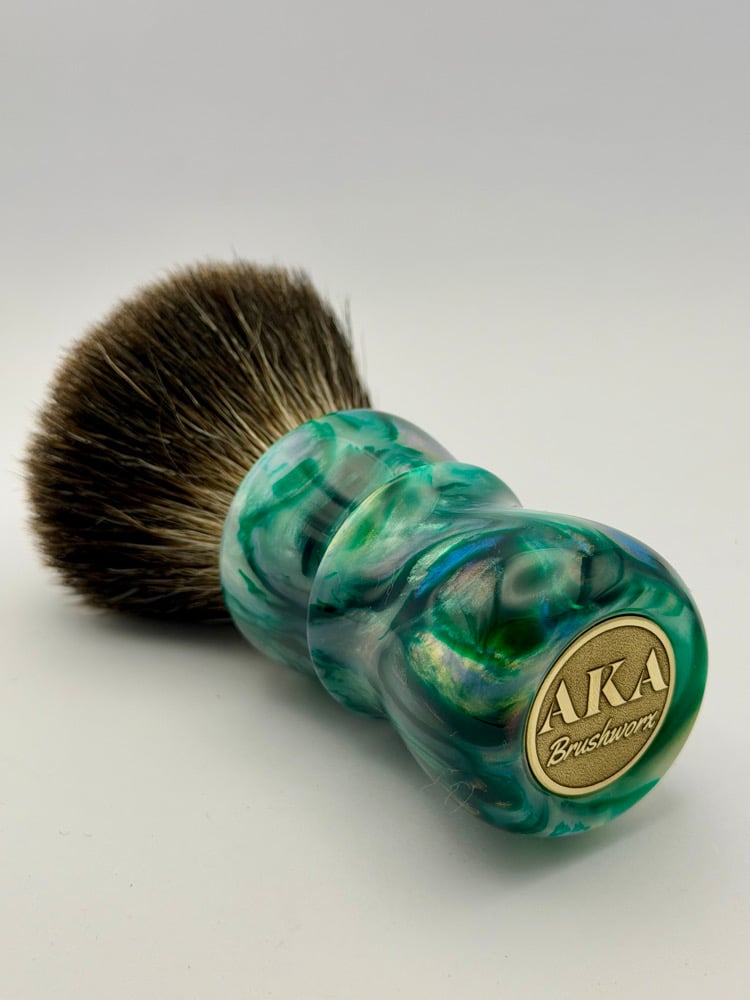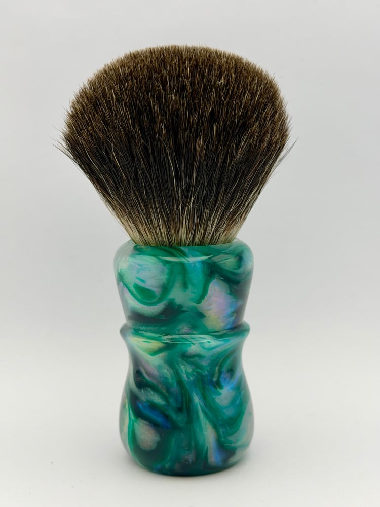 This is a hand turned and finished Resin shave brush handle. This comes with our new coin.