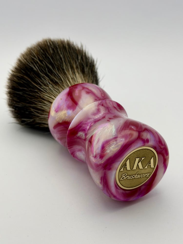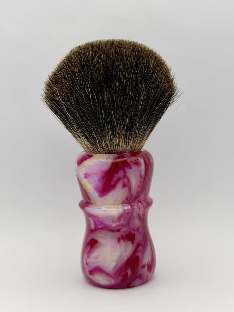 This is a hand turned and finished Resin shave brush handle. This comes with our new coin.