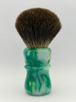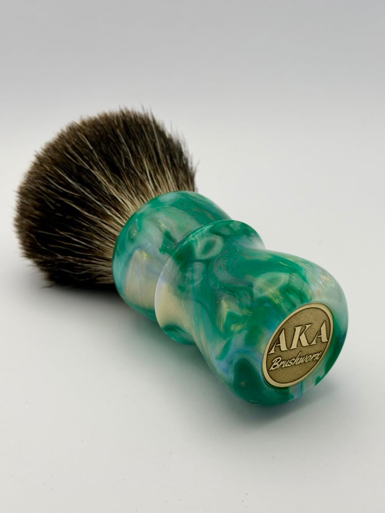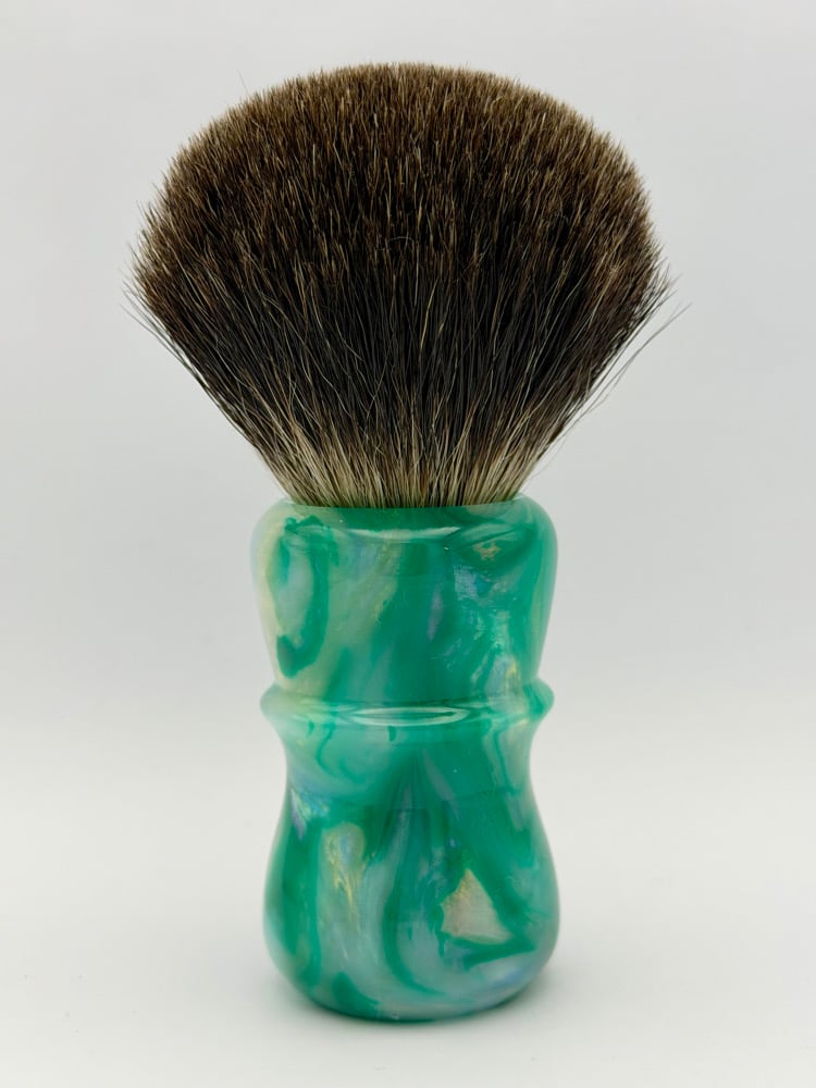 This is a hand turned and finished Resin shave brush handle. This comes with our new coin.