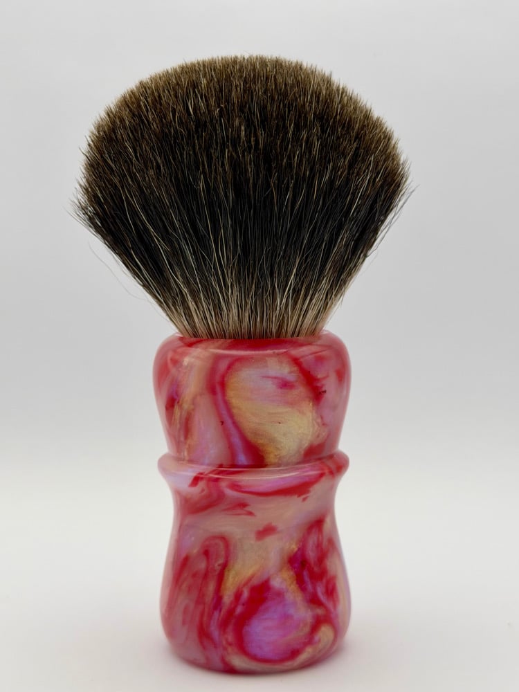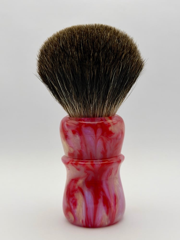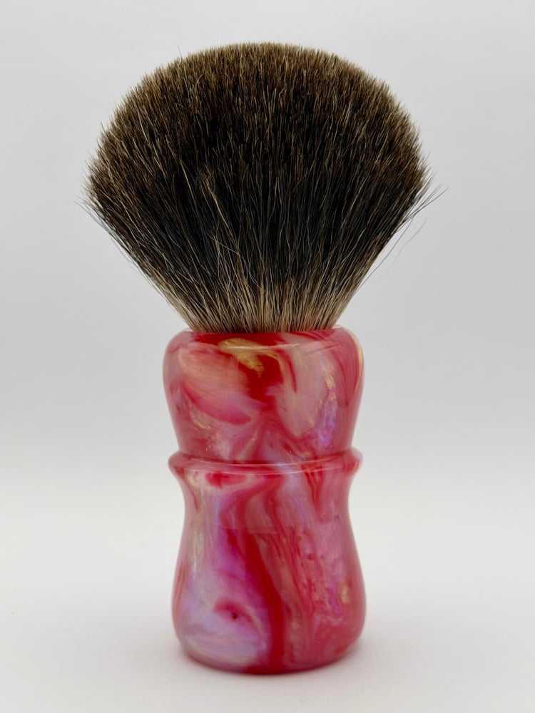 This is a hand turned and finished Resin shave brush handle. This comes with our new coin.