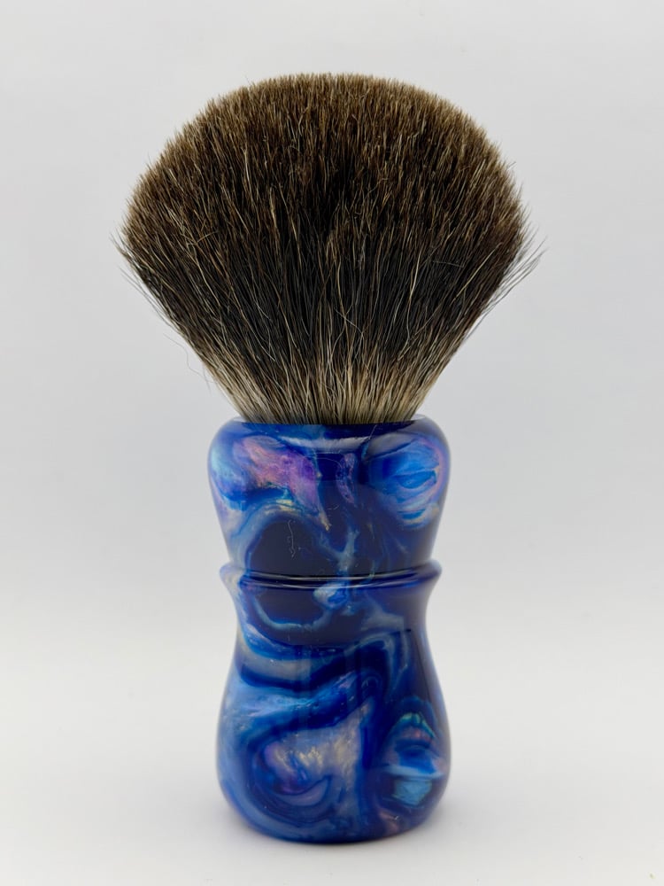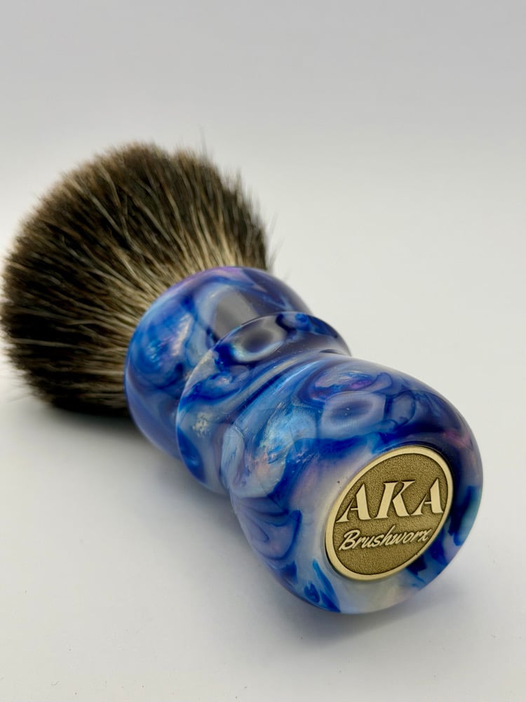 This is a hand turned and finished Resin shave brush handle. This comes with our new coin.