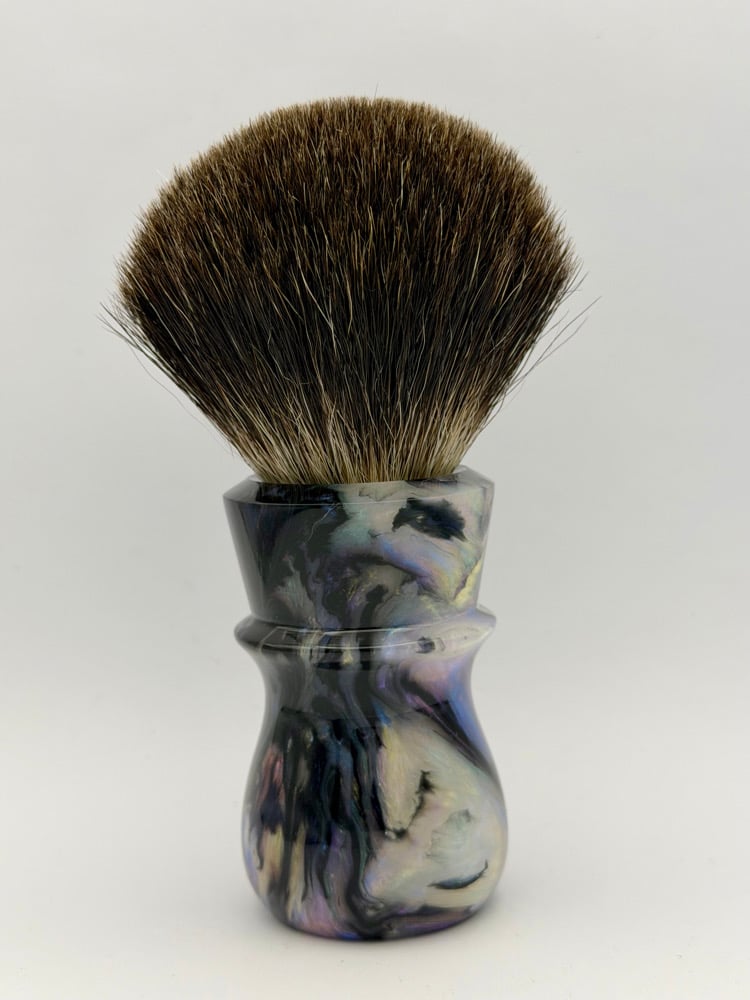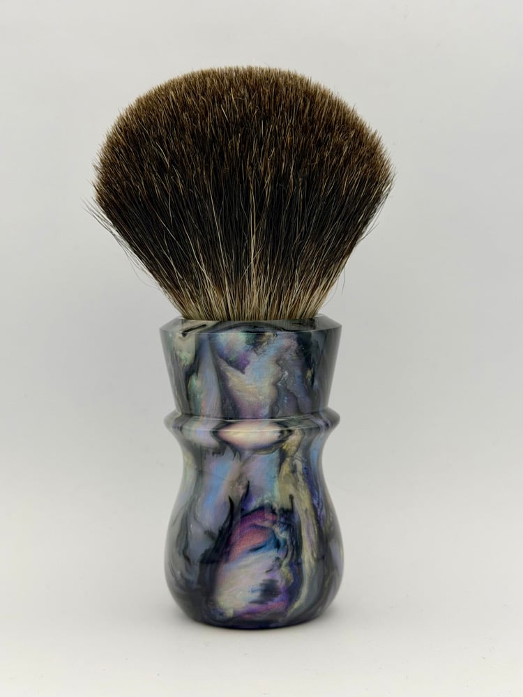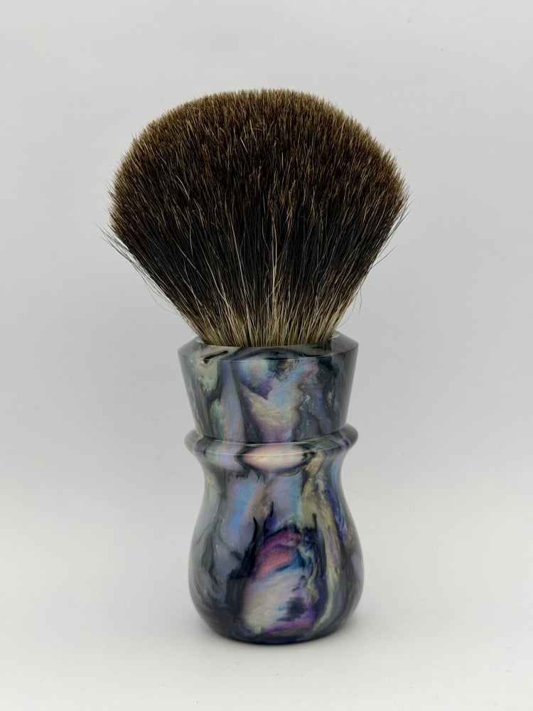 This is a hand turned and finished Resin shave brush handle. This comes with our new coin.