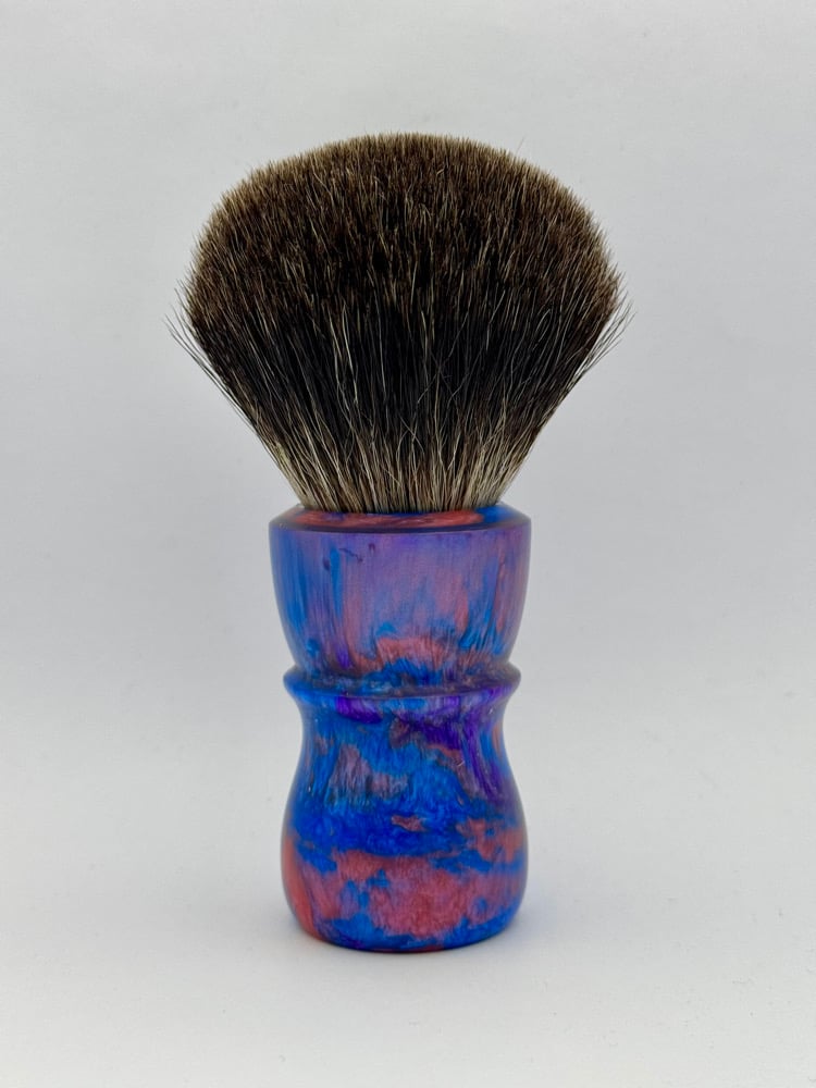 This is a hand turned and finished Resin shave brush handle. This comes with our new coin.