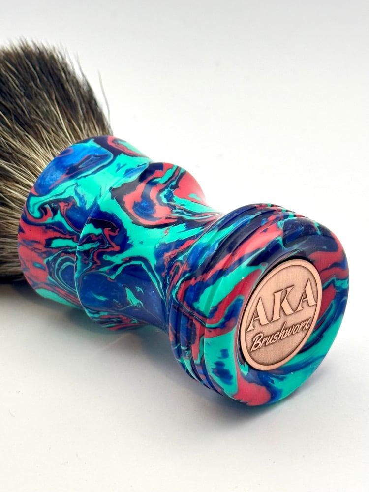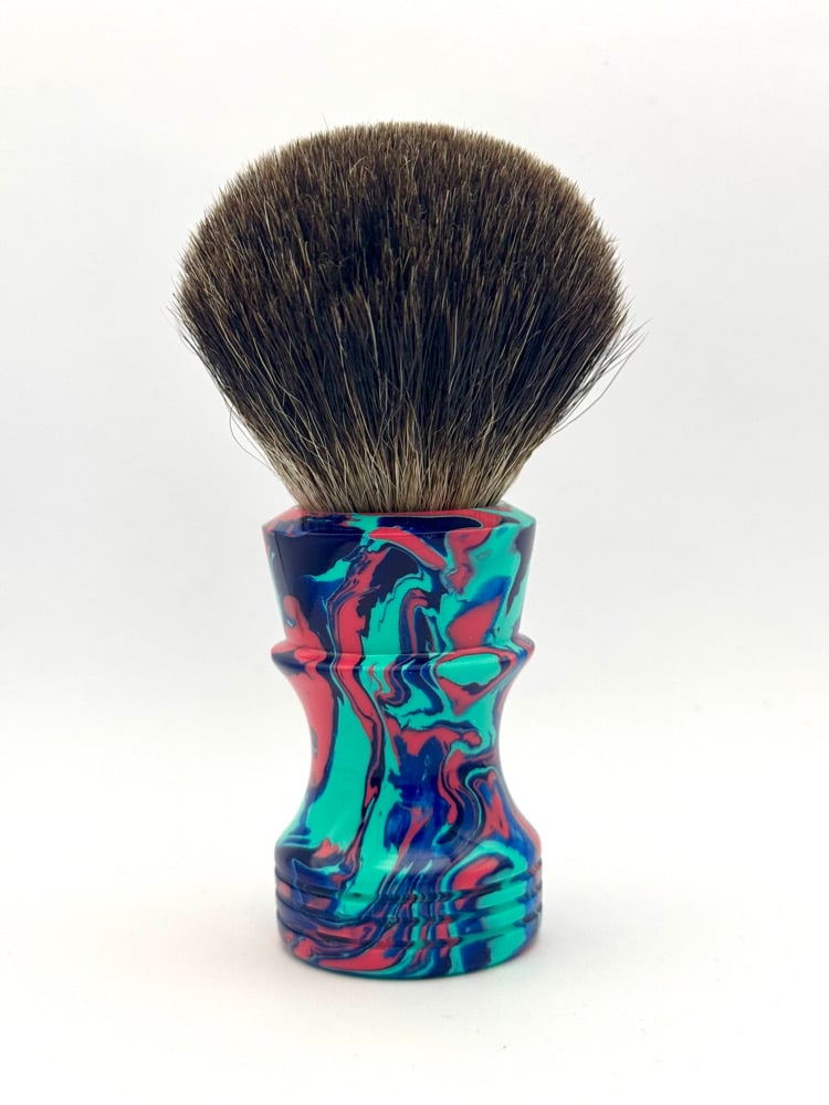 This is a hand turned and finished Resin shave brush handle. This comes with our new coin.