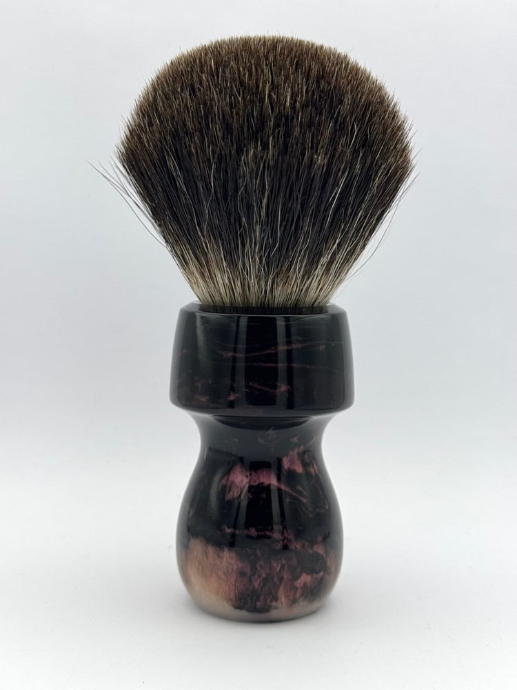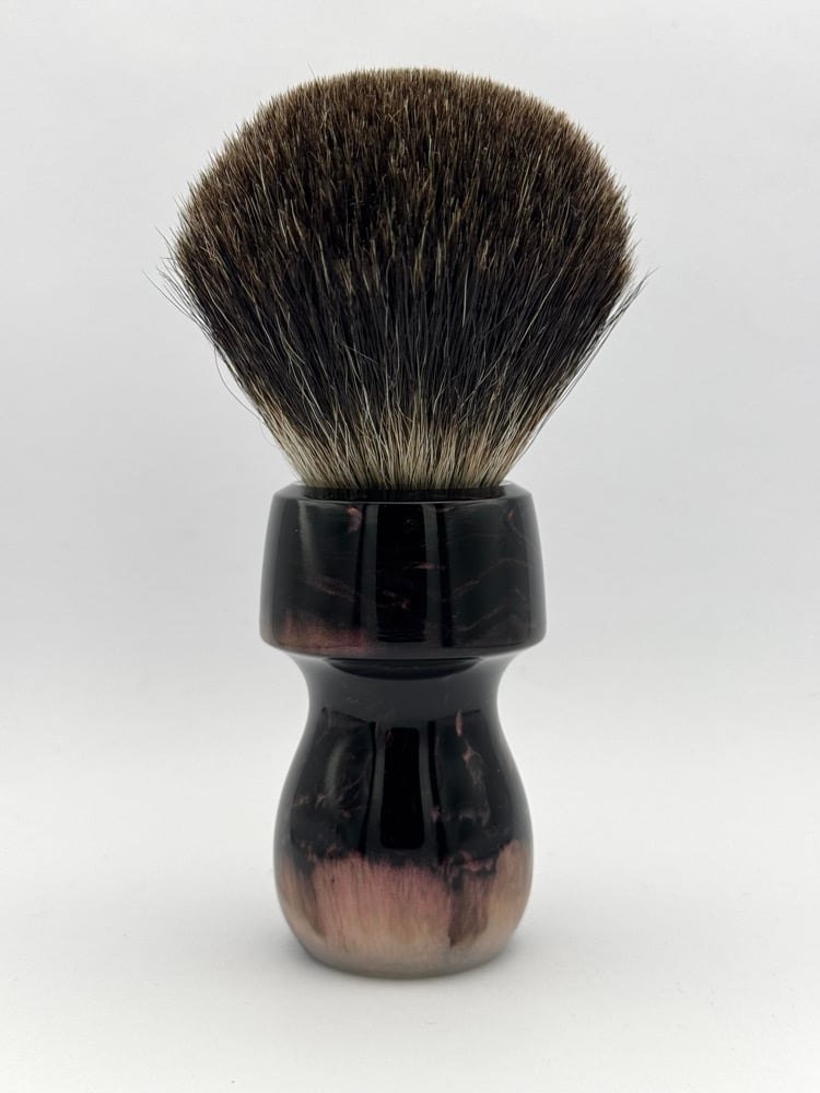 This is a hand turned and finished Resin shave brush handle. This comes with our new coin.