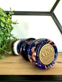 This is a hand turned and finished Resin shave brush handle. This comes with our new coin.