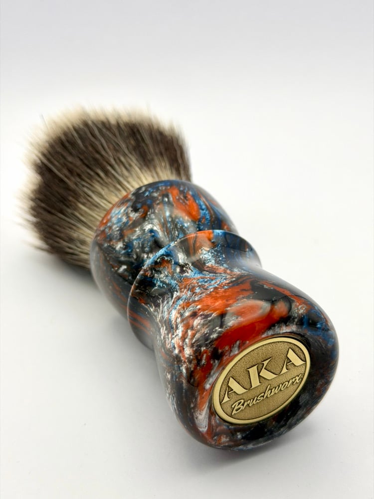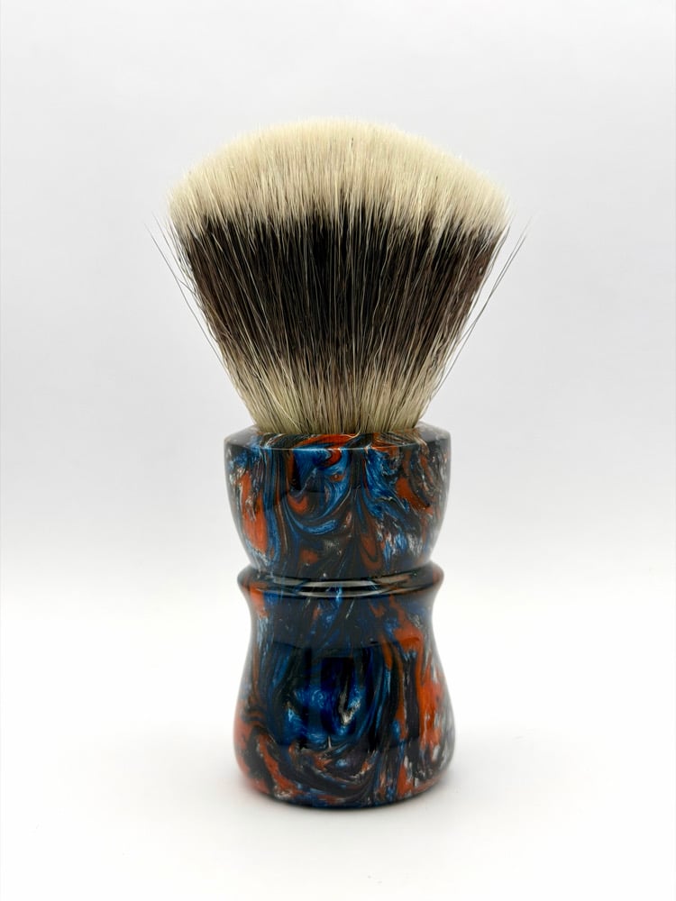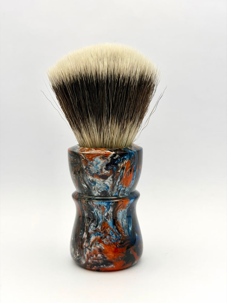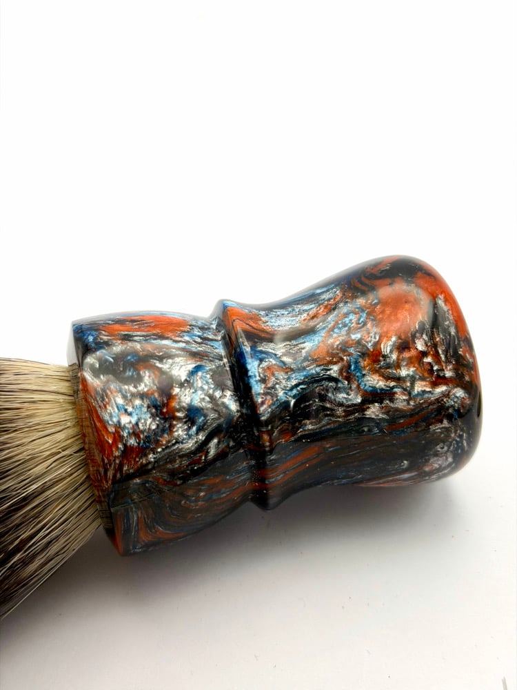 This is a hand turned and finished Resin shave brush handle. This comes with our new coin.