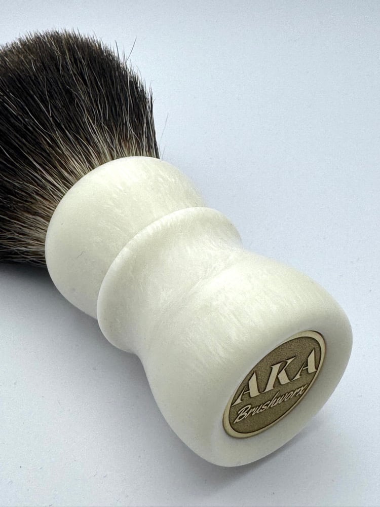 This is a hand turned and finished Resin shave brush handle. This comes with our new coin.