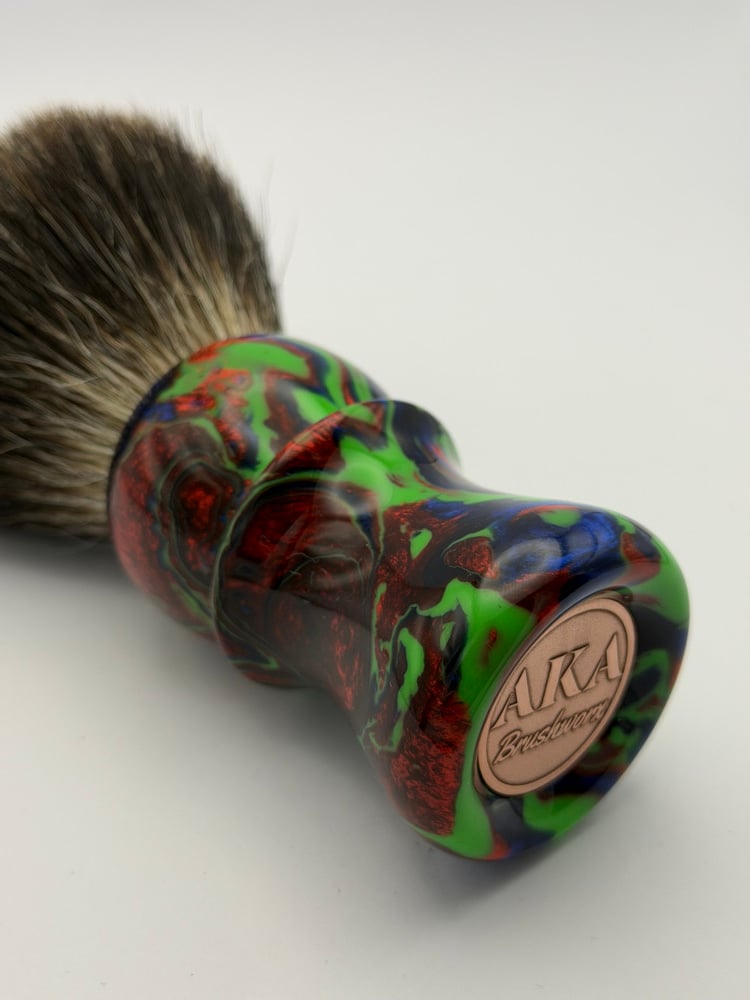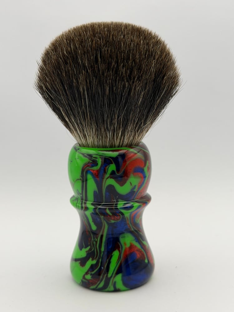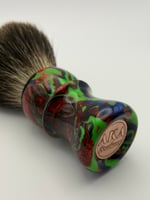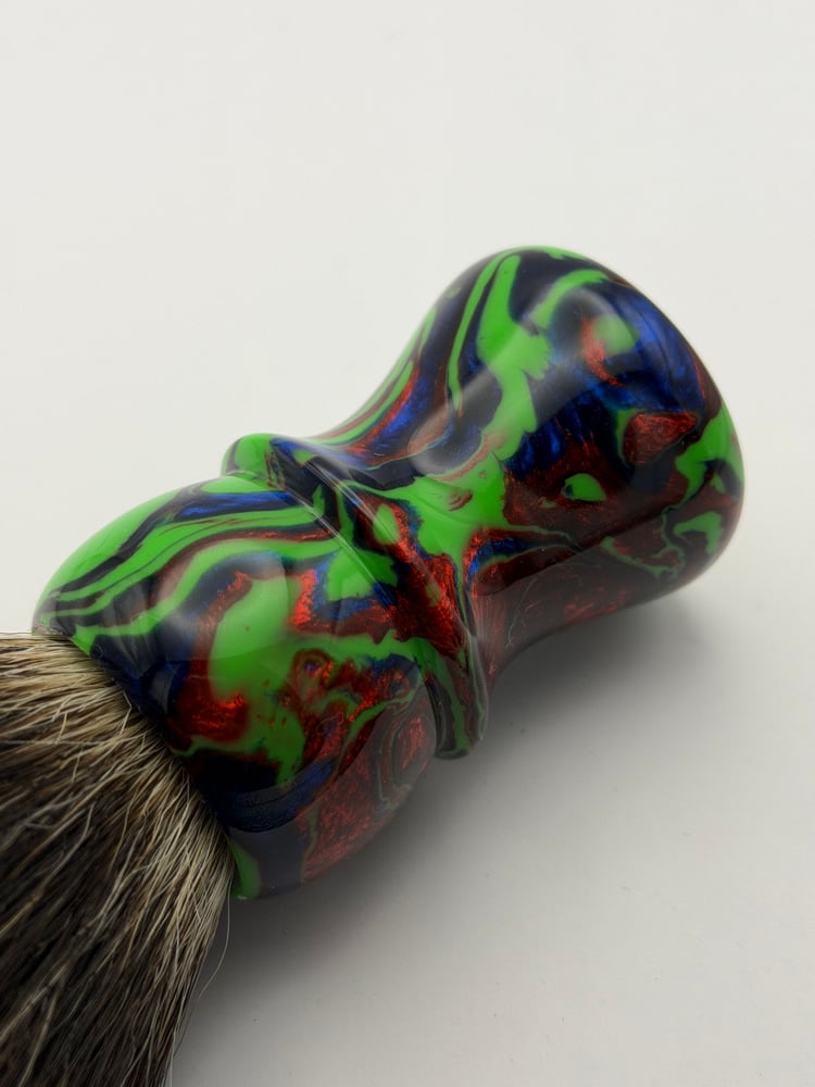 This is a hand turned and finished Resin shave brush handle. This comes with our new coin.