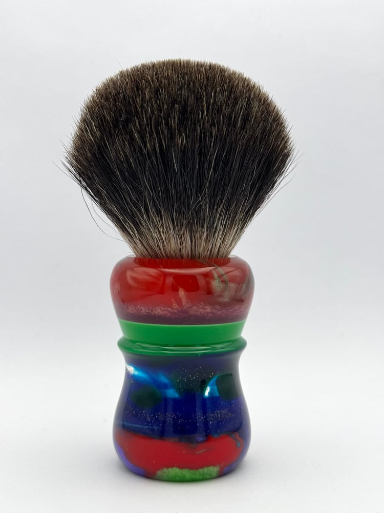 This is a hand turned and finished Resin shave brush handle. This comes with our new coin.