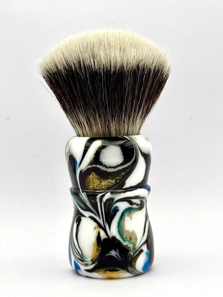 This is a hand turned and finished Resin shave brush handle. This comes with our new coin.