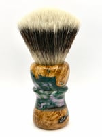 This is a hand turned and finished Resin shave brush handle. This comes with our new coin.